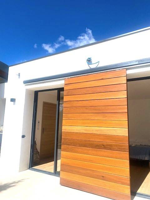 Ici vous retrouverez un modèle de volets coulissants pleins sur-mesure réalisés pour un client proche d'Aubagne à Eoures.