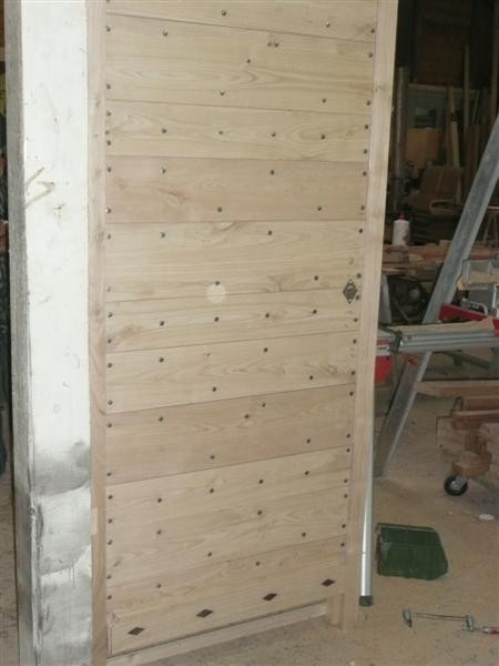 Pour cette réalisation nous avons brossé le bois pour faire ressortir le veinage. La porte ainsi que les volets persiennes de type niçois avec portissol ont étés fabriqués pour un chantier en Corse.