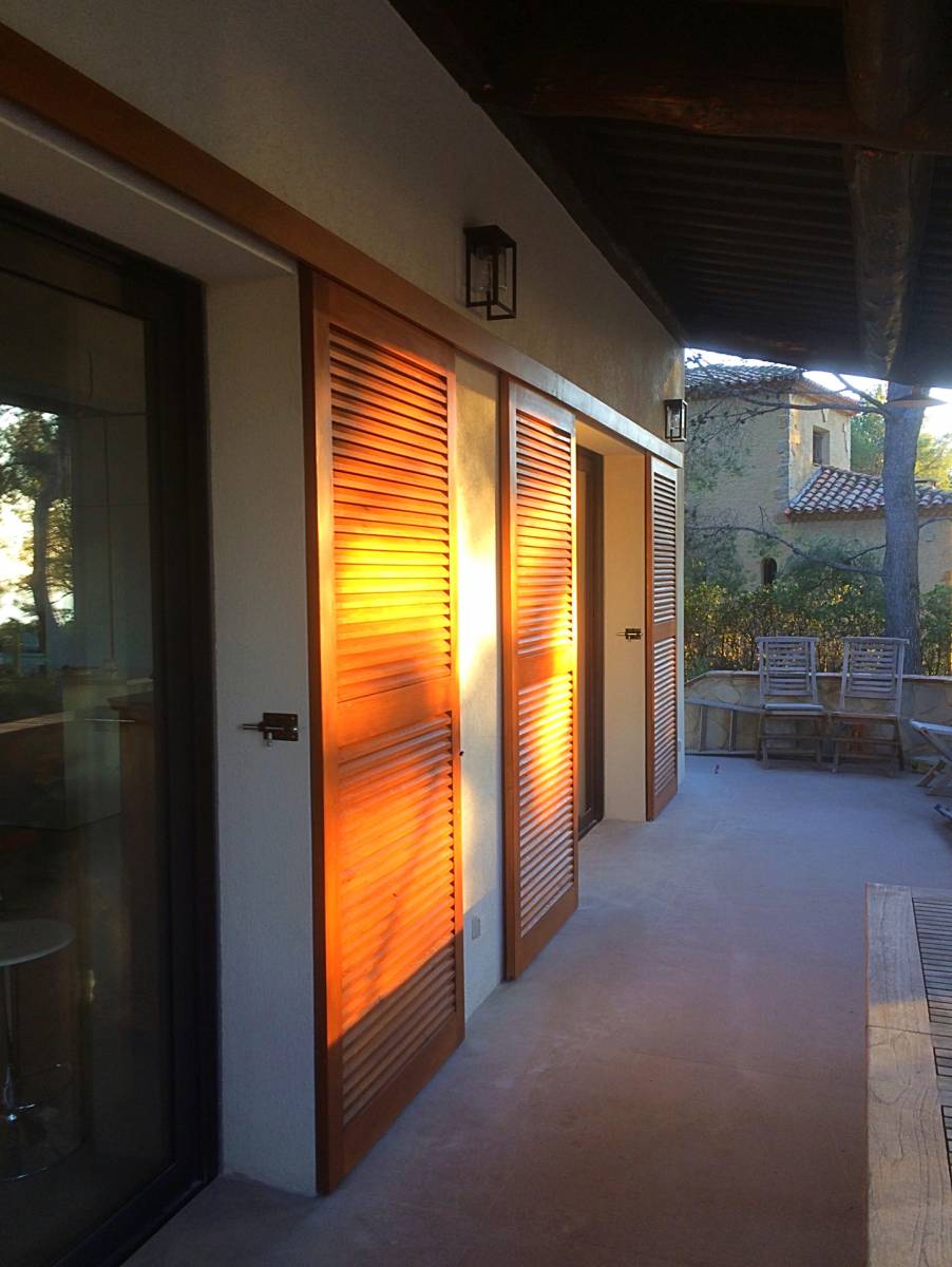 Création de volets persiennes coulissants en bois pour des clients sur Cassis à coté de la Ciotat